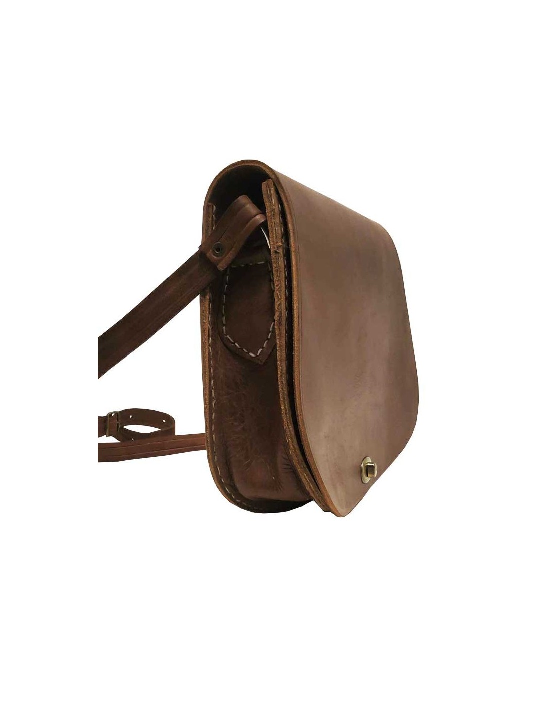 Sac bandoulière en cuir entièrement travaillé à la main par des artisans. Le cuir de ce sac est épais et solide. Un fermoir en métal couleur bronze permet de garder le sac bien fermé. Une fois ouvert, une grande poche centrale permet d'y ranger votre nécessaire et une pochette à l'avant avec fermeture éclair pour y placer l'essentiel.