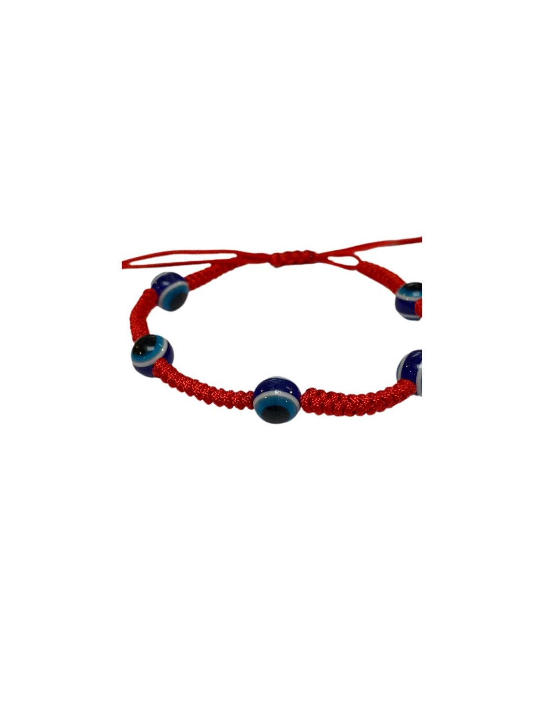 Deze rode armband is een prachtig geluksbrenger! De kleur rood is volgens de Tibetanen een symbool van kracht, vreugde en voorspoed. De glazen kralen zijn beschilderd om op een oog te lijken, een Turks amulet dat vaak in Arabische kringen wordt aangetroffen. Nazar Boncuk, of kortweg Nazar, zijn talismannen die beschermen tegen het boze oog, tegen jaloezie en afgunst van anderen, als waren zij lokmiddelen voor deze negatieve golven.