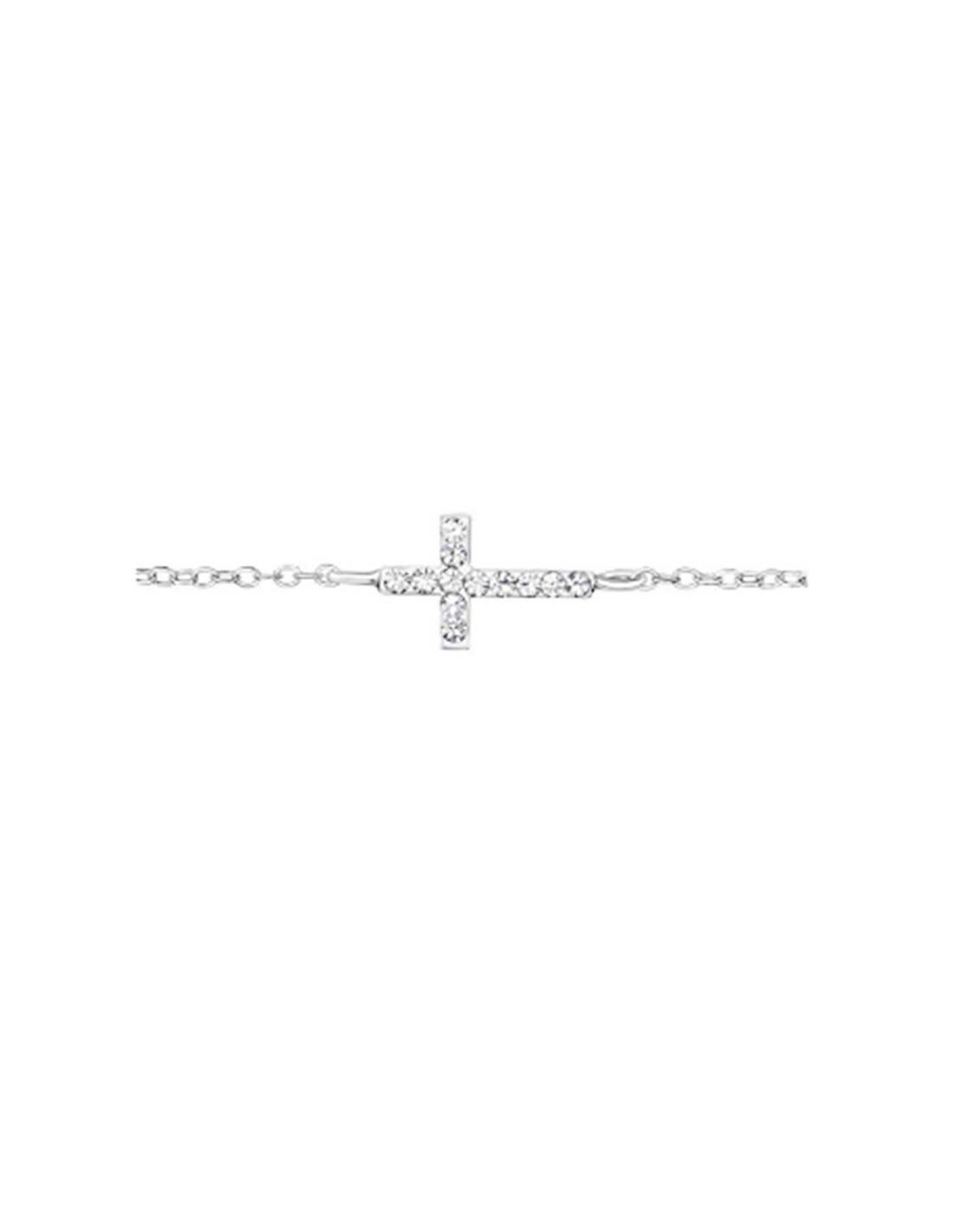 925 verzilverde armband, fijn en discreet, met horizontaal kruis. Uw geloof is belangrijk voor u, dus er is geen reden om het niet aan de wereld te laten zien met deze zilveren kruis ketting armband bezaaid met kleine fonkelende kristallen! Een chique en oogverblindend accessoire om te dragen bij elke gelegenheid.