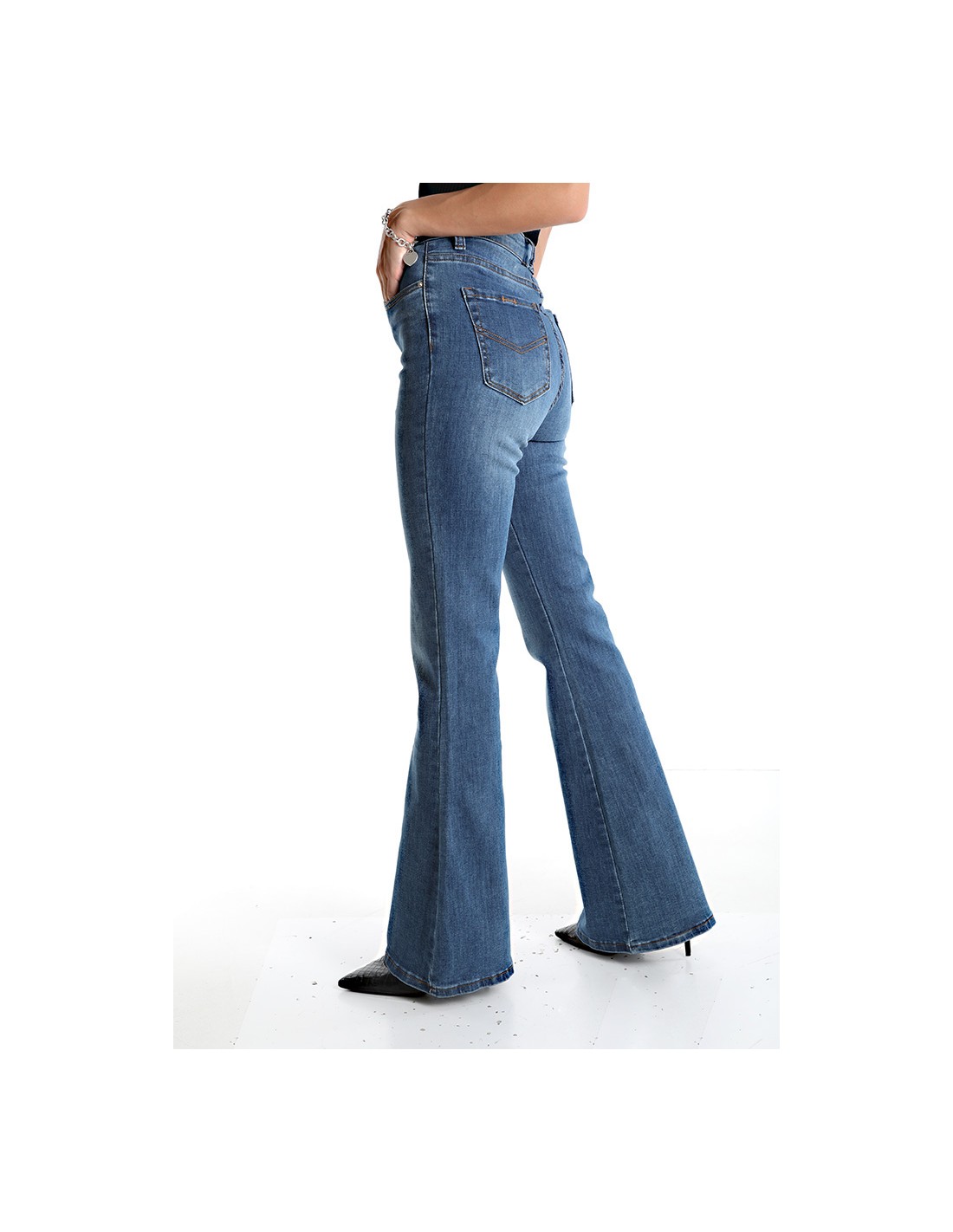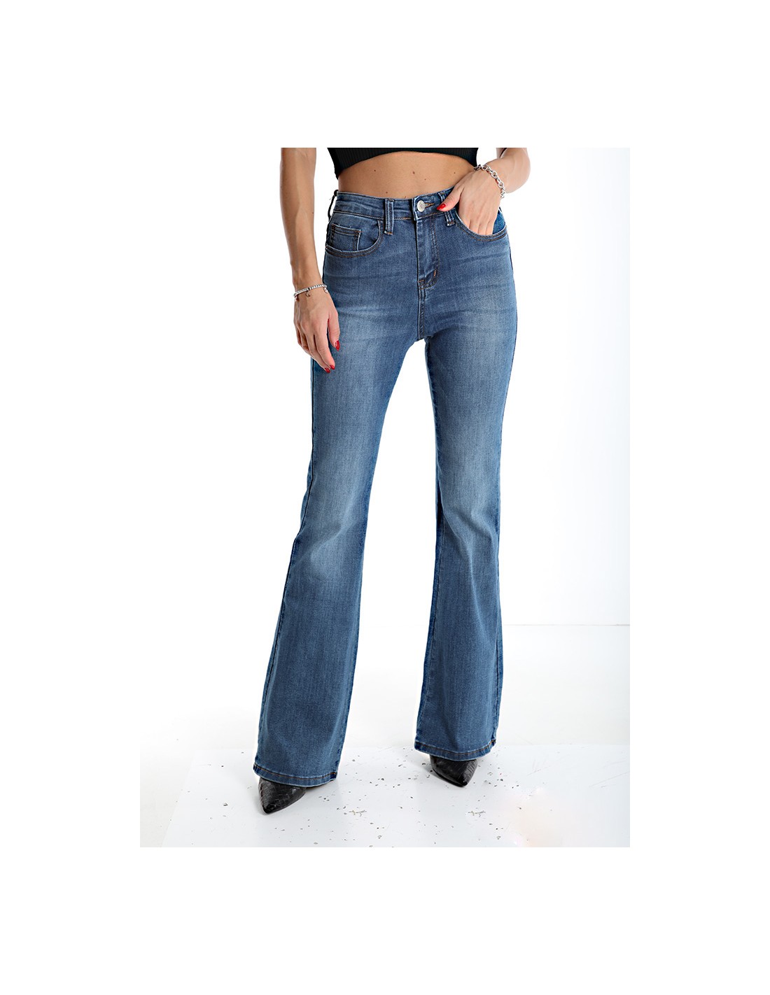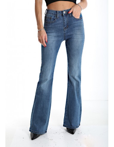 Blauwe denim flared broek, ook wel bootcut genoemd, met hoge taille, pure stijl. U zult er van houden!