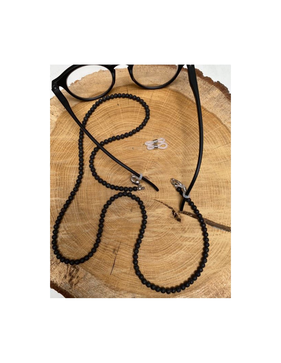 Dit brillenkoord is een chique en praktisch accessoire. Praktisch om uw bril op te houden zonder hem te hoeven dragen, chique dankzij de kralen van lavasteen, een fijne steen die in de lithotherapie bekend staat om zijn deugden.