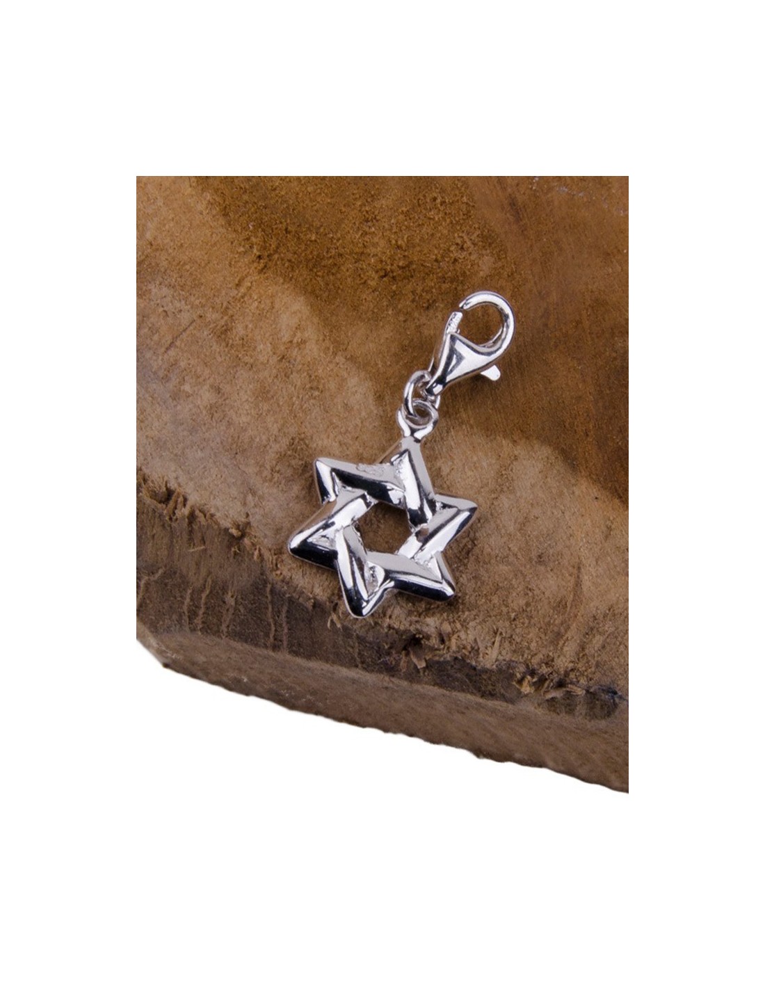 Hanger bedel in echt zilver 925 in de vorm van een Davidsster. Met de kleine karabijnhaak kunt u hem bevestigen waar u maar wilt.