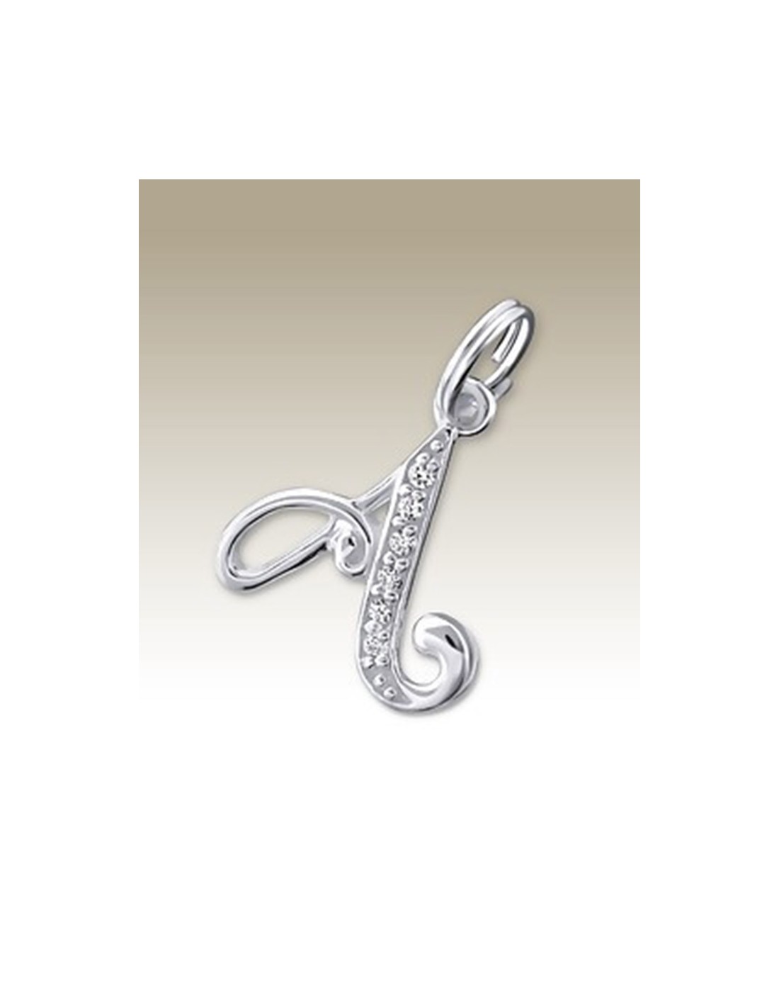 925 zilveren hanger in de vorm van de letter A en ingelegd met kristallen. De brief is in prachtig handgeschreven kalligrafie.