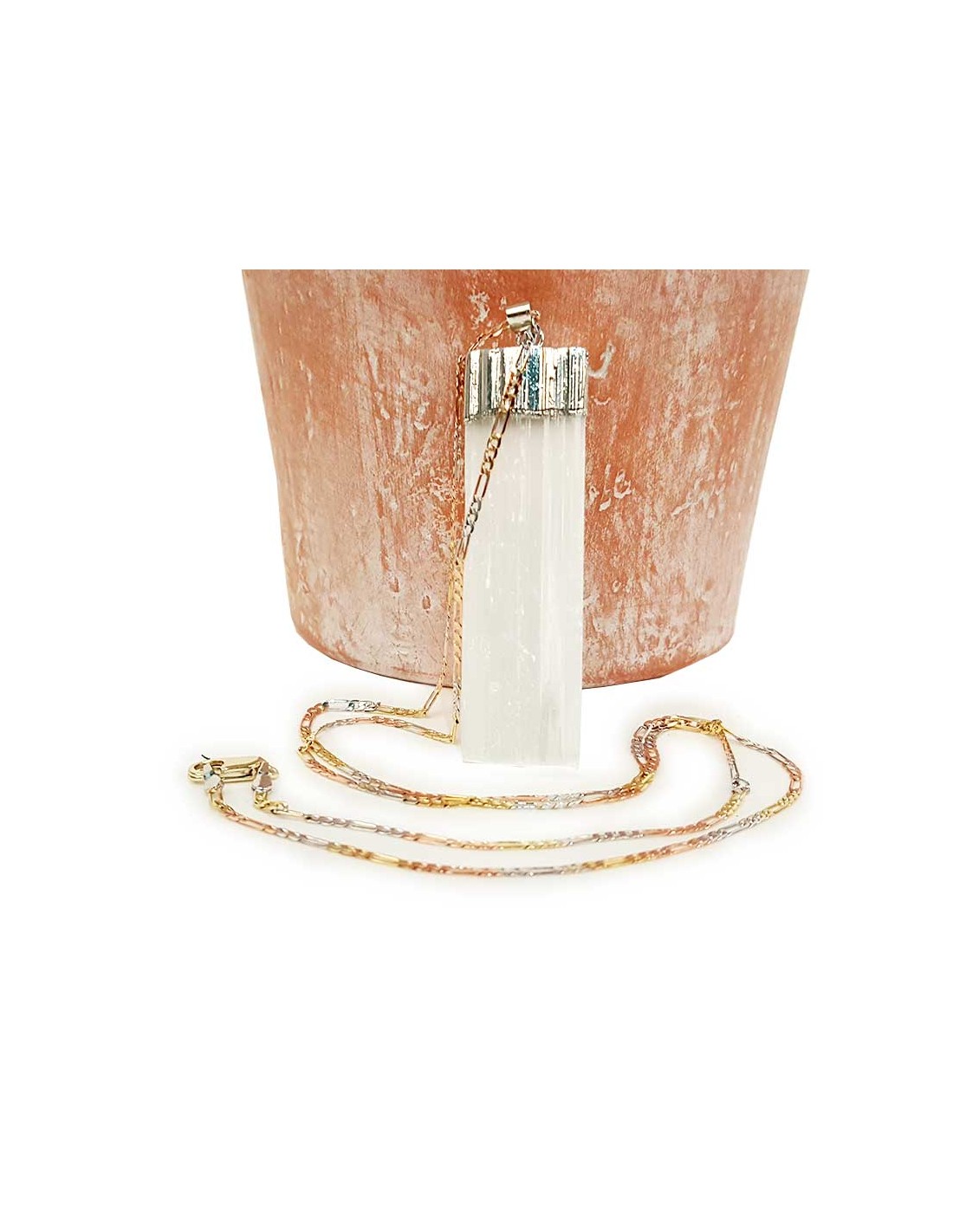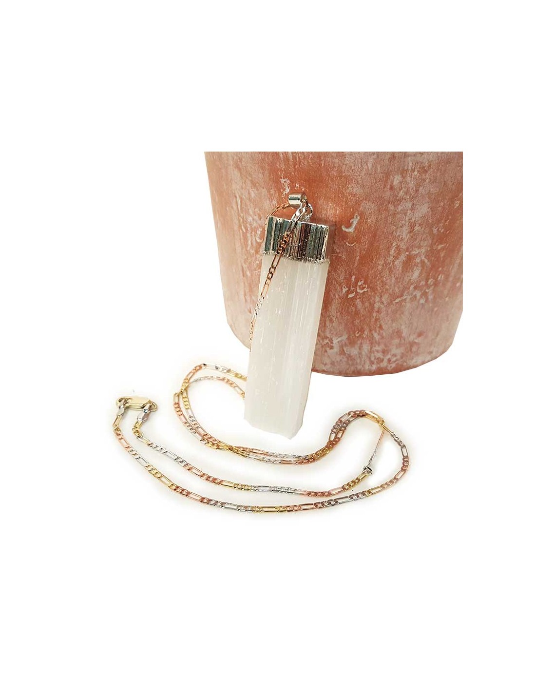 Ketting met hanger van ruwe selenietsteen. De ketting is inbegrepen.