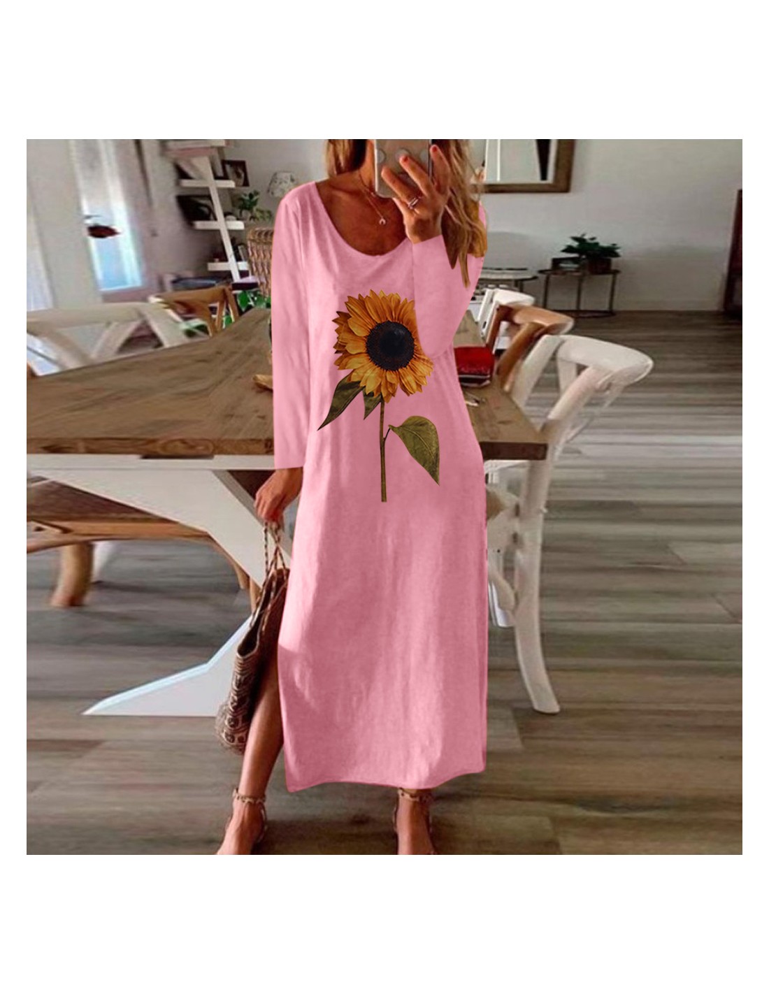 Lange roze zonnebloemjurk
