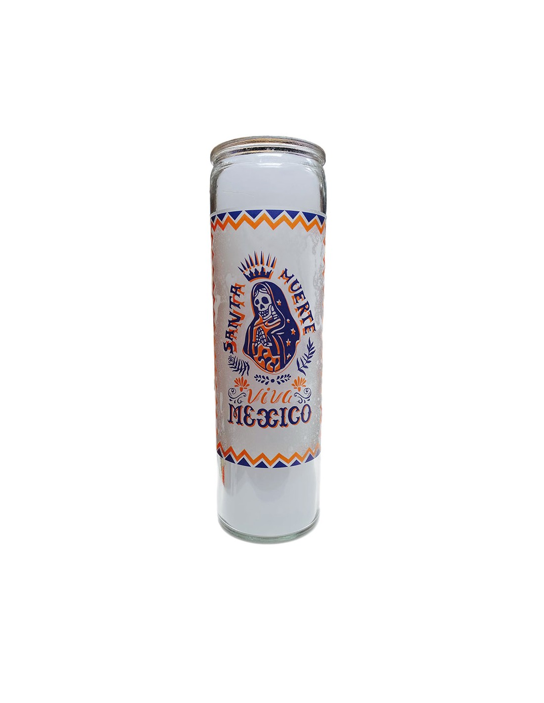 Met de afbeelding van de Heilige Dood, een skelet van een Maagd en de boodschap Viva Mexico voor el Dia de Los Muertos is deze kaars perfect om een originele sfeer te creëren!