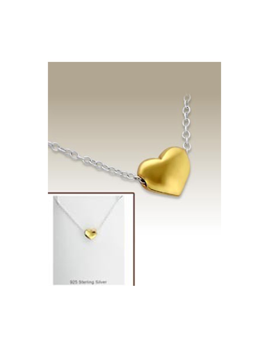 Ketting en hanger in 925 zilver. De hanger is hartvormig, goudkleurig.