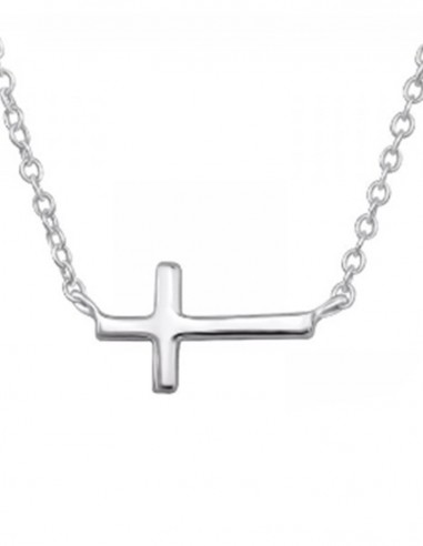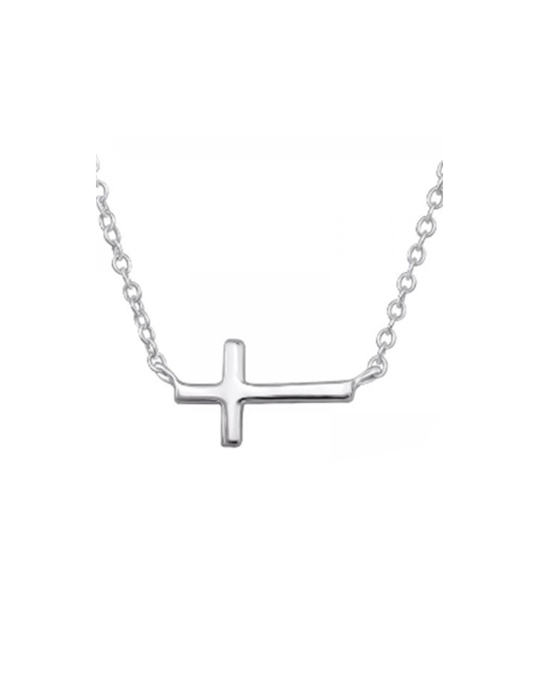Mooi en fijn halssieraad met horizontaal kruis, geheel van 925 sterling zilver
