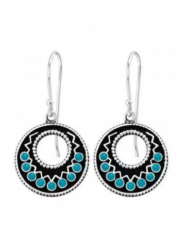 Paar etnische stijl oorbellen in 925 zilver met zwarte en blauwe epoxyhars afwerking.