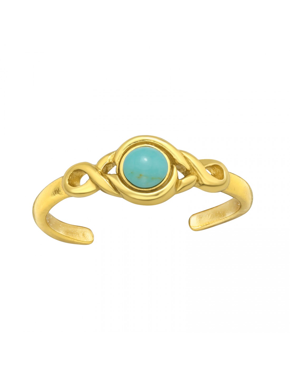 Verstelbare teenring met imitatie turkoois in 925 Sterling Zilver, verguld