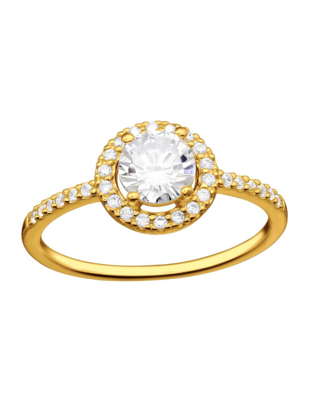Verfraai uw stijl met deze verfijnde solitairering, vervaardigd uit 925 sterling zilver met een elegante vergulde + E-Coat afwerking. Bezet met 31 fonkelende zirkonia’s, verenigt hij schittering en finesse.
