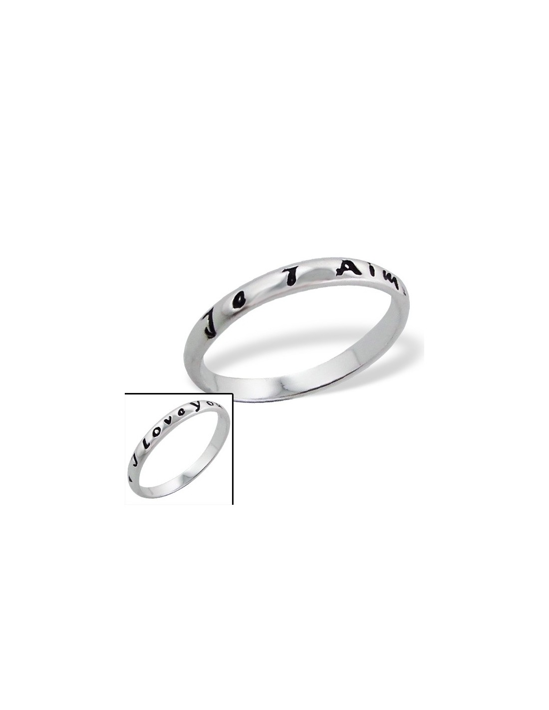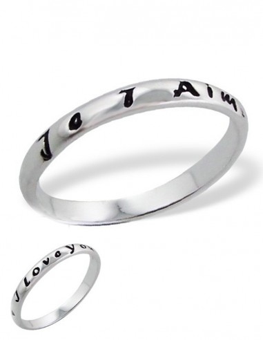 Ring in echt zilver 925, eenvoudige en sobere ring gegraveerd met de woorden "I love you" en "Ik hou van jou". Een trendy en schattig juweel.