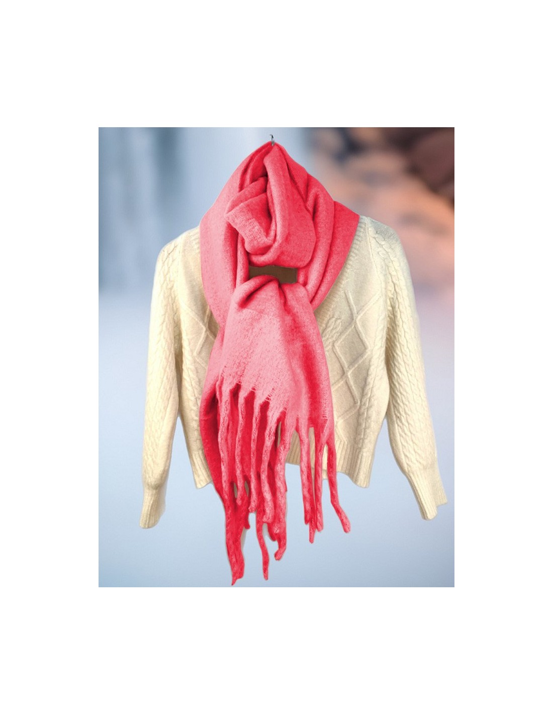Onze favoriet voor deze winter is deze collectie ultrazachte wollen sjaals, grote maten en vooral heel warm! Deze sjaal is verkrijgbaar in verschillende kleuren en zorgt ervoor dat u zich zelfs bij koude wind comfortabel kunt wikkelen. Van uitstekende kwaliteit, de dikke kasjmier- en mohairwol krast niet op de huid.