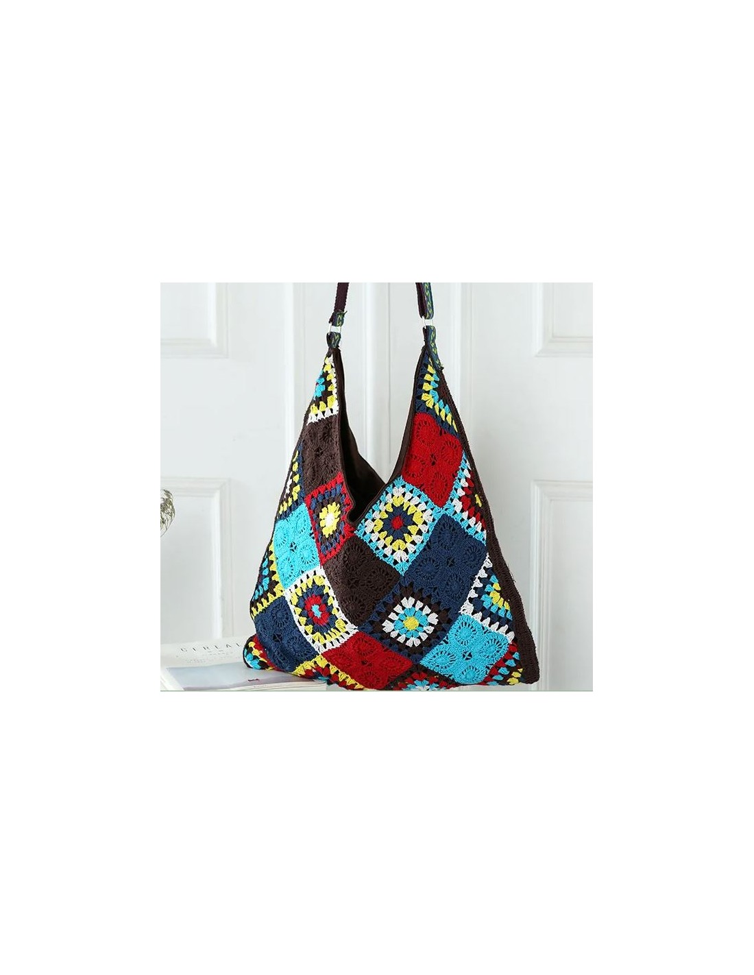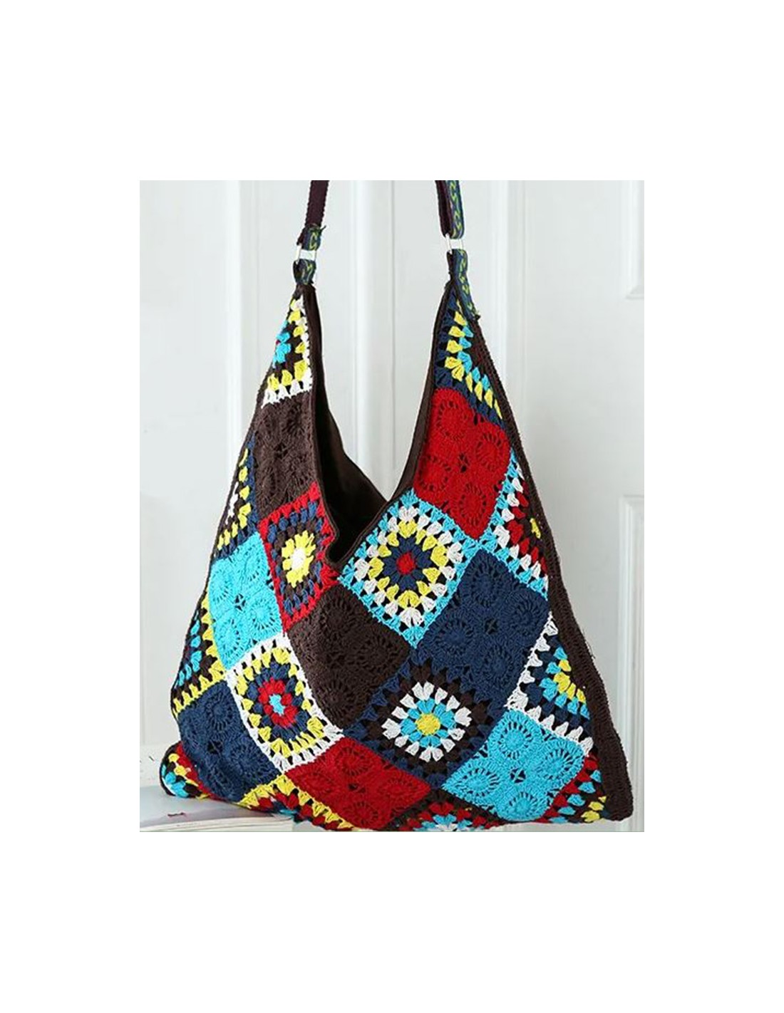 Volledig met de hand gehaakt en gemaakt, springt deze grote hobo-tas in het oog met zijn sprankelende kleuren en geometrische patronen! Of het nu voor dagelijks gebruik is, vakanties zoals een uitstapje naar het strand of een bohemien avondje, deze tas combineert chique en casual stijl! Het interieur is gevoerd met bruin polyester, met rits en een zak. De grote, kleurrijke schouderriem is verstelbaar voor extra comfort.