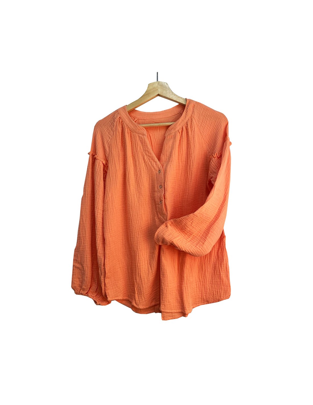Met zijn losvallende pasvorm is deze blouse comfortabel om te dragen. Volledig in katoen, luchtig en licht, perfect voor zomerse dagen. De wijde V-hals met de weinige knopen en de pofmouwen zijn typerend voor de bohemian stijl en geven een ontspannen sfeer.