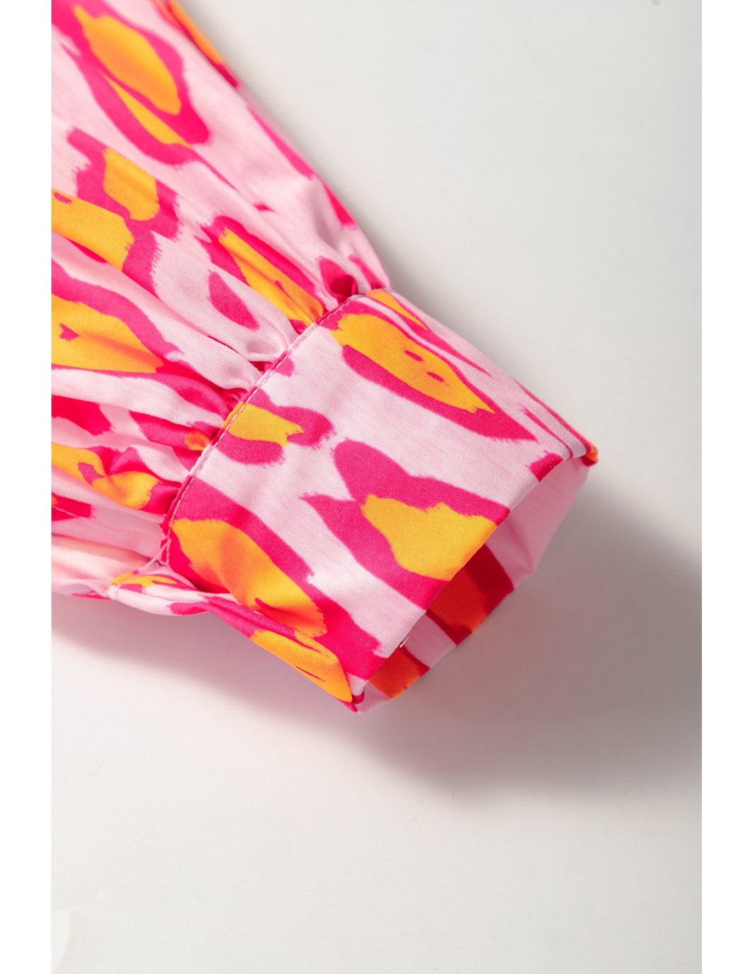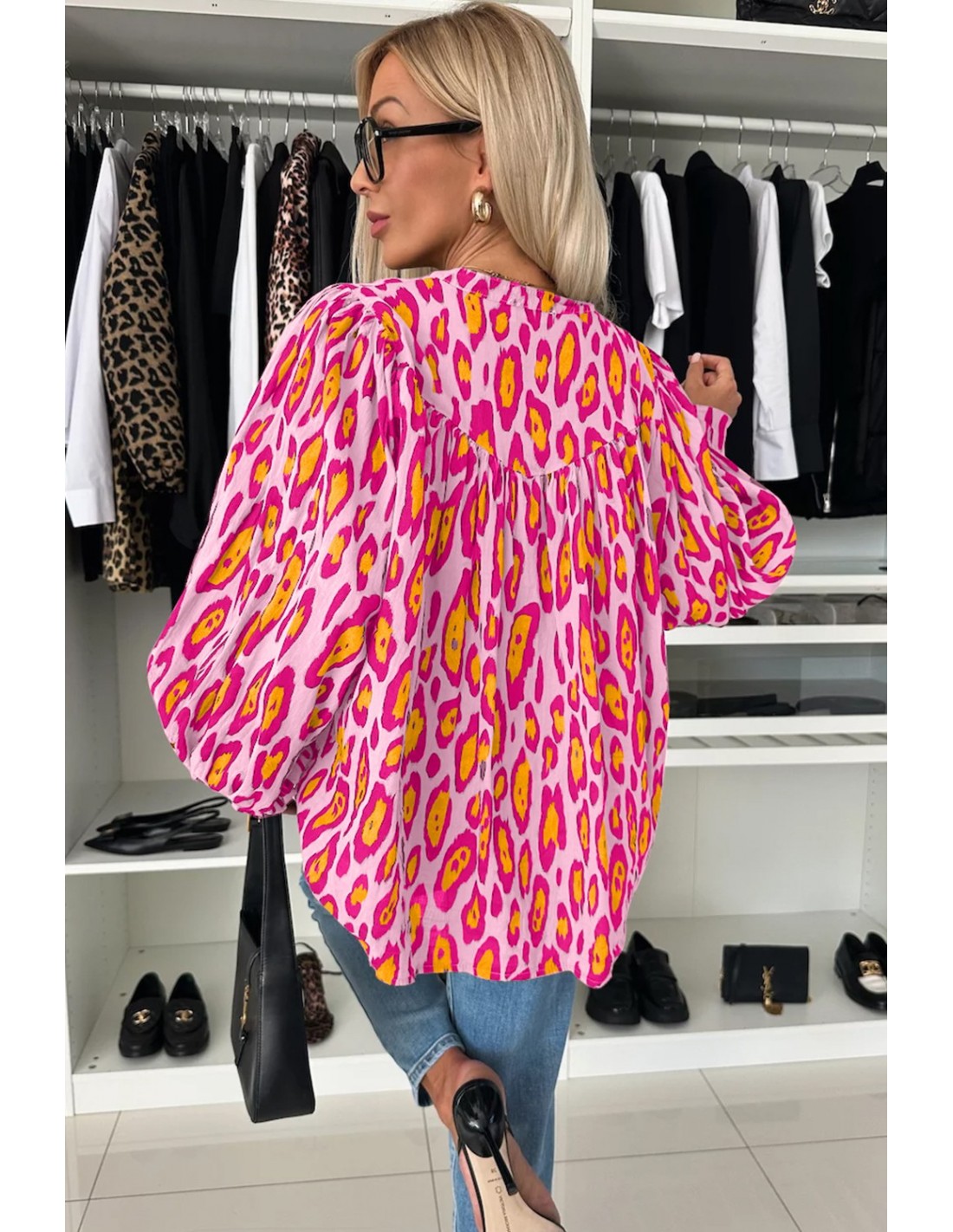 Oversize Roze-Rode Luipaard Blouse met Ballonmouwen – Elegant & Casual