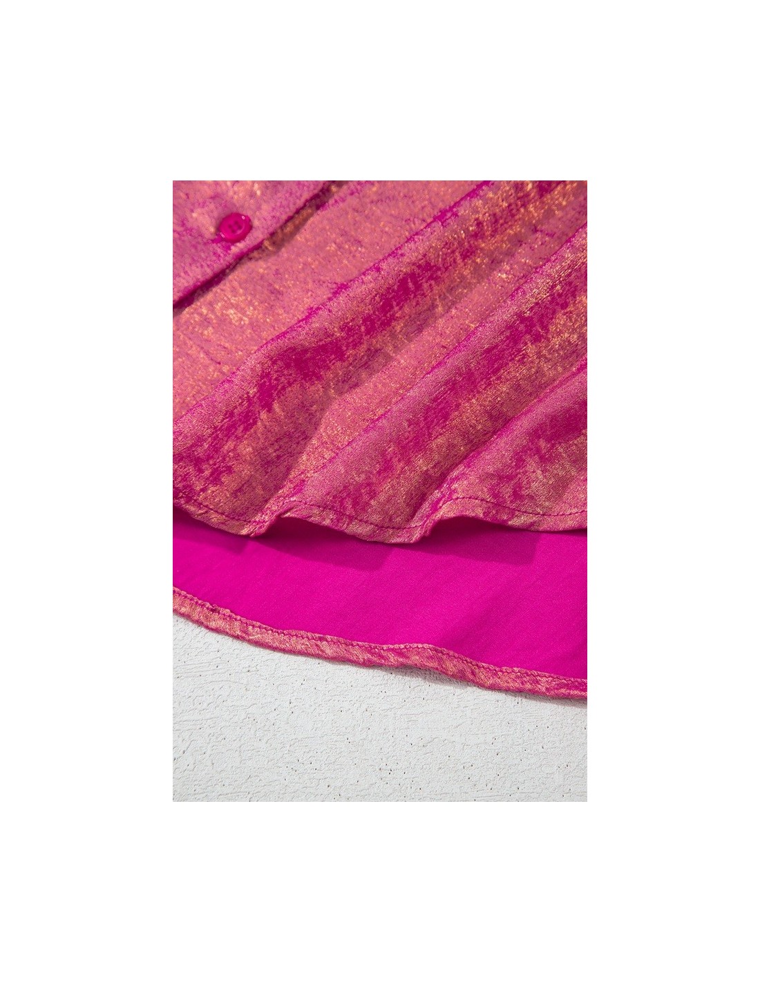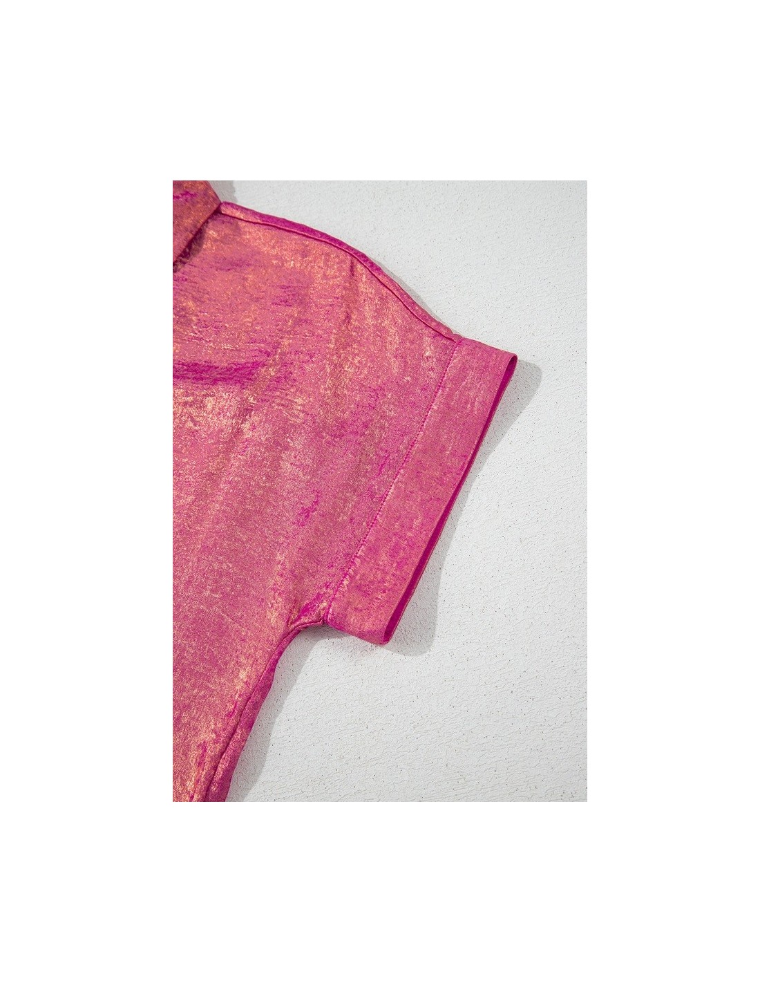 Rosé Rood Metallic Sheen Korte Mouwen Overhemd – Stijlvol & Comfortabel