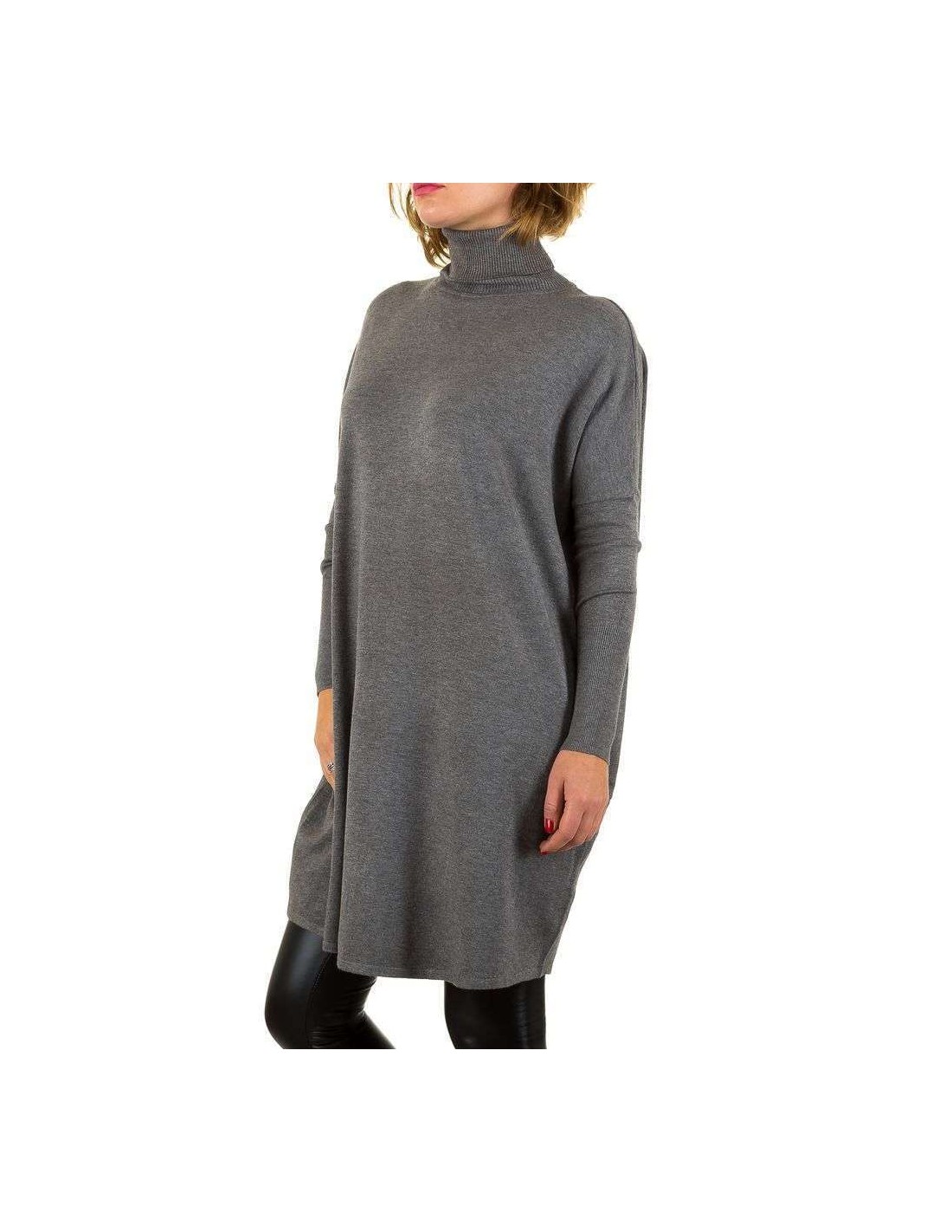 Deze trui is ruim maar ook lang en kan als tuniek gedragen worden. Om u te ontlasten, kunt u een dunne riem onder de borst gebruiken om u te benadrukken.