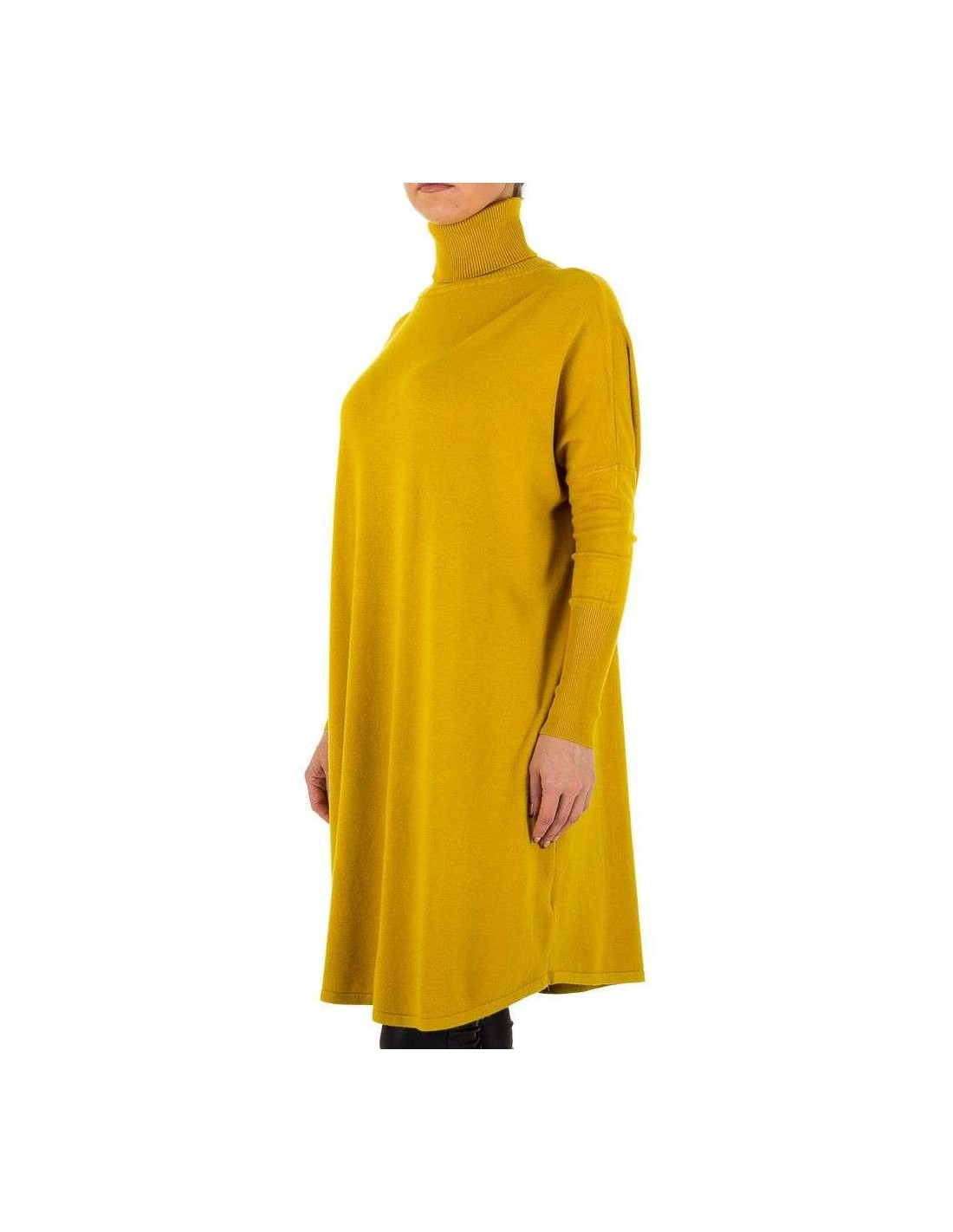 Losse en comfortabele coltrui met eenvoudige belijning, verkrijgbaar in verschillende kleuren die aan de herfst doen denken: mosterd, rood, grijs en zwart. Eén maat voor alle maten van XS tot L.